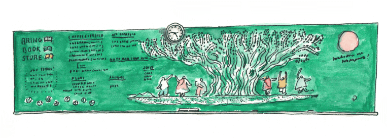 こうして本を持ち寄る「bring」と、元は学舎だったことから
