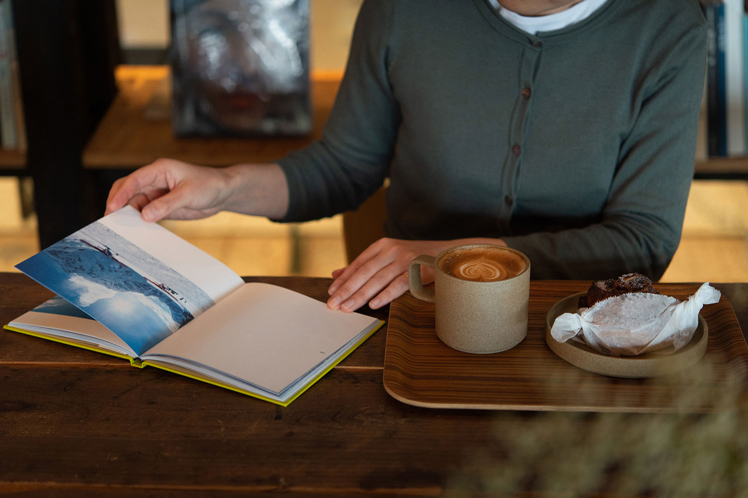 店内では本を読みながら、自家製カレーやスイーツを楽しめるカフェとして