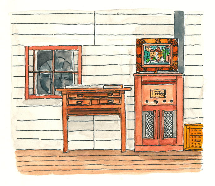 規則的に開いた四角い窓から、有田の海を見てもらうために