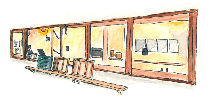 規則的に開いた四角い窓から、有田の海を見てもらうために